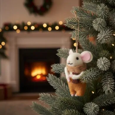 Ёлочное украшение мышь с книгой войлочная, белая, 14 см