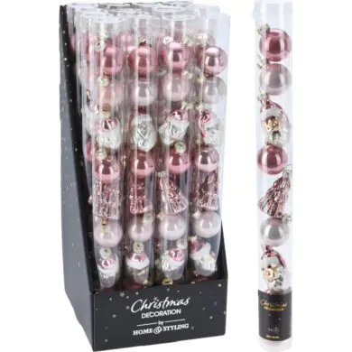 Набор из 9 ёлочных украшений, стеклянные, розовые, 3 см