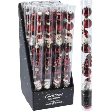 Ёлочные шары стеклянные, набор из 9 шт., красный и белый с узорами, 3 см