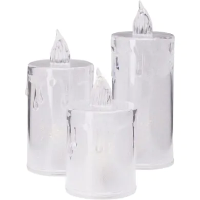 Набор из 3 прозрачных LED-свечей, теплый свет, 8 - 12,5 см.