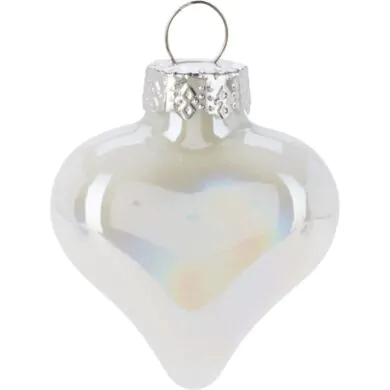 Набор из 12 стеклянных шишек, звезд и сердечек, белые перламутровые, 4 см