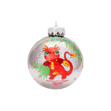 סמל השנה כדור זכוכית לתליה דראקושה אש כסוף 6.5 ס"מ