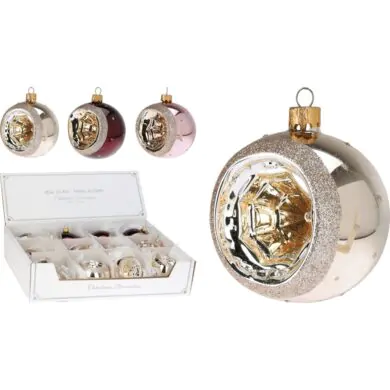 כדור זכוכית "פנס", ורוד עם זהב, 8 ס"מ