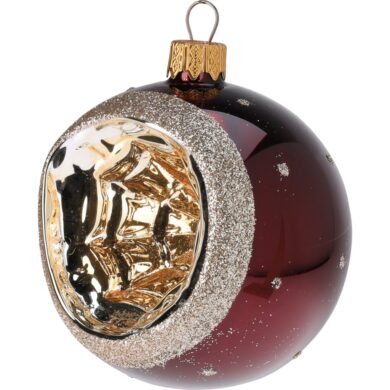 כדור זכוכית "פנס", בורדו עם זהב, 8 ס"מ