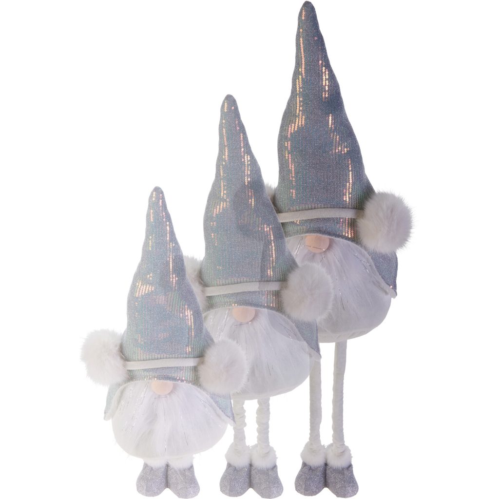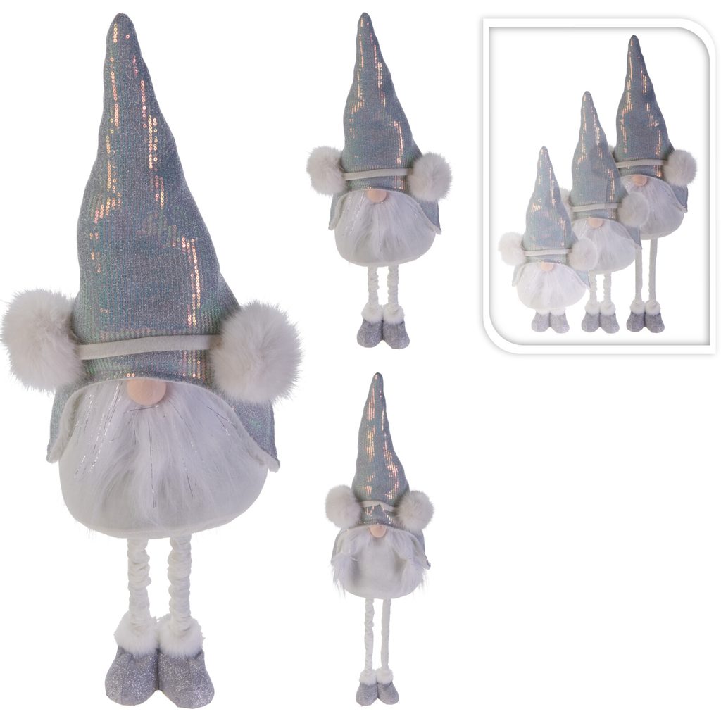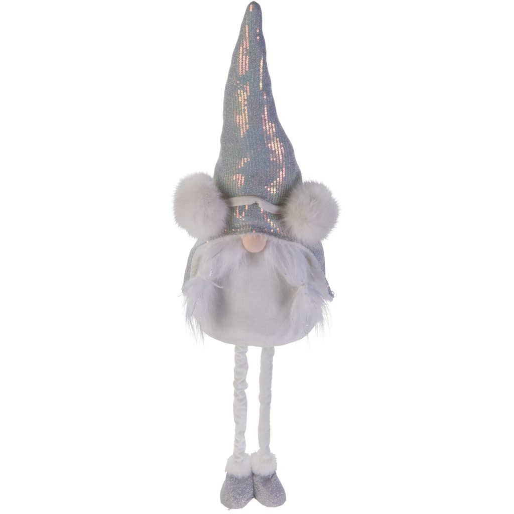 גמד מקסים עם רגליים טלסקופיות הנמתחות לסך של 93 ס”מ ומתקפלות. הם עשויים בצבעי כסף ולבן ומעוטרים בפאייטים מנצנצים ופונפונים אווריריים, המשווים להם מראה חגיגי.
