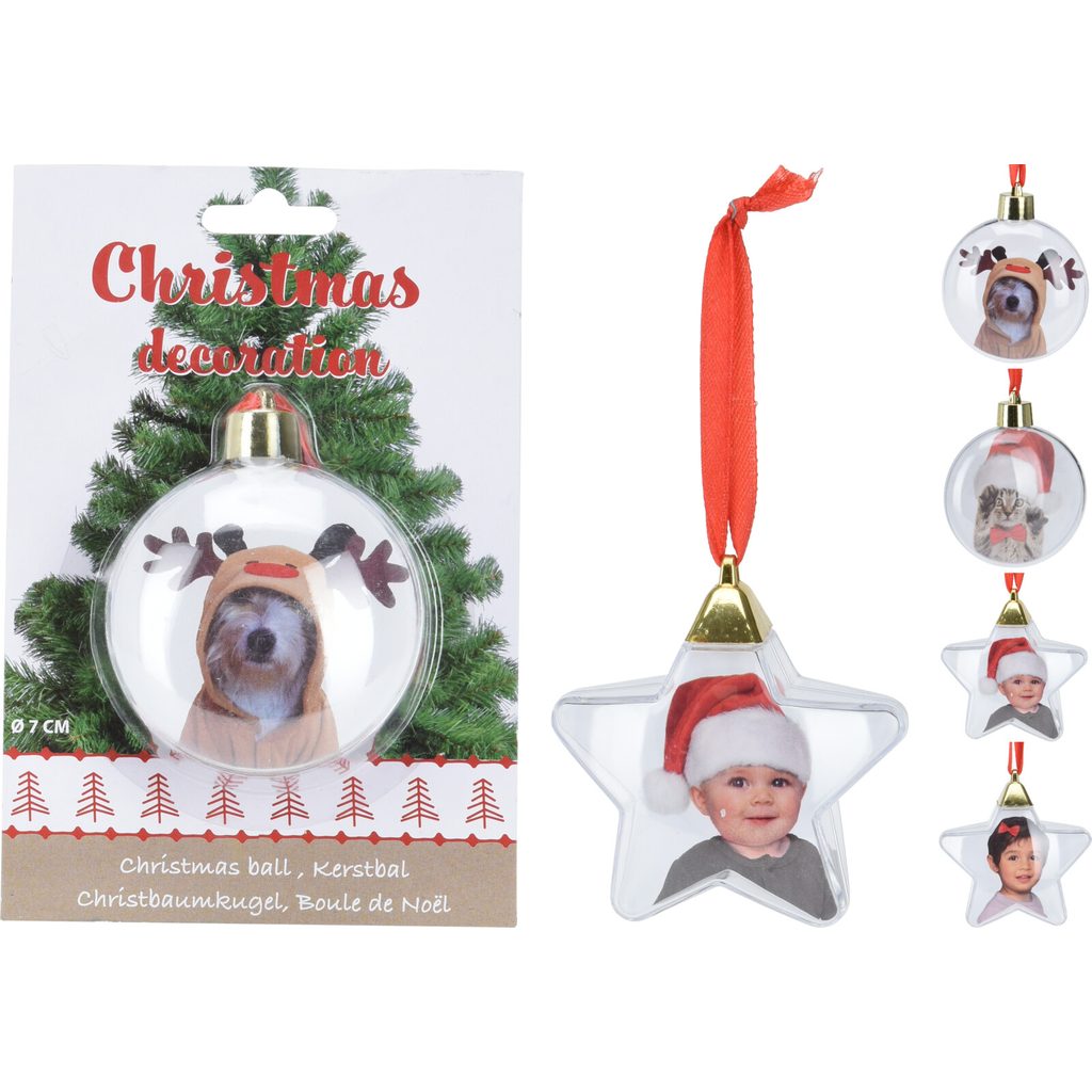 כדור עץ חג המולד לתמונה שלך, שקוף, פלסטיק, 7 ס”מ