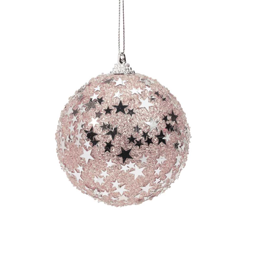 קישוט לתליה כדור פלסטיק עם כוכבים ורוד 8 ס”מ