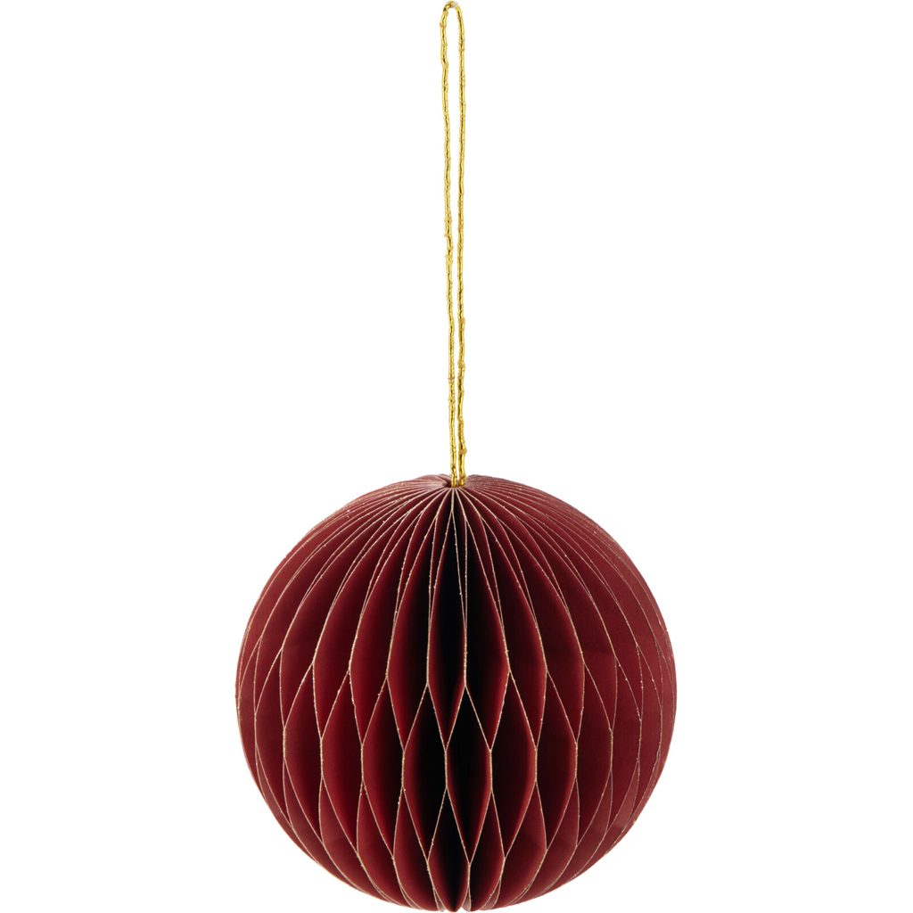 כדור נייר אלגנטי זה עם גימור זהב יהווה תוספת נפלאה לעיצוב השנה החדשה שלך. מבנה חלת הדבש הייחודי והצבע הבורדו העשיר יוצרים אווירה חגיגית. ידידותי לסביבה
