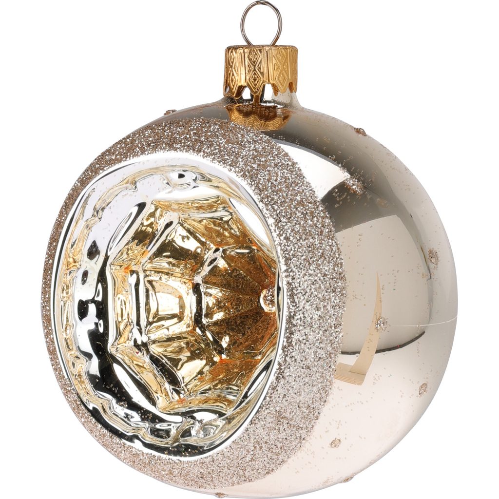 כדור עץ חג המולד המעולה הזה עם רפלקטור מוזהב מרהיב בפנים יהפוך למבטא בהיר בעיצוב השנה החדשה שלך. הכדור עשוי בעבודת יד, מה שהופך כל מוצר לייחודי.