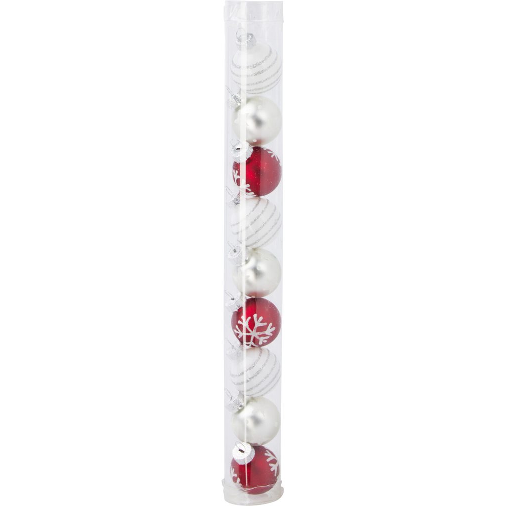 כדורי עץ חג המולד מזכוכית, סט של 9, אדום ולבן עם דוגמאות, 3 ס”מ
