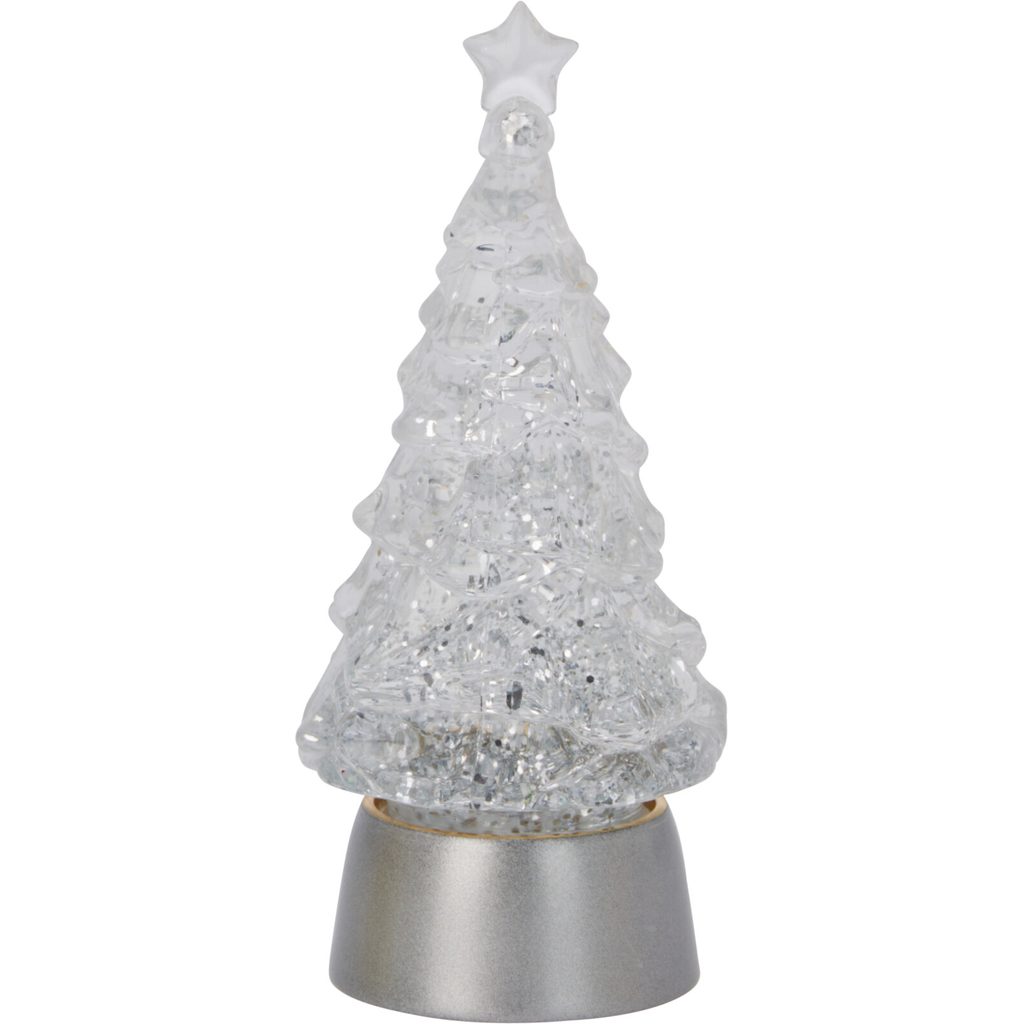 קישוט עץ חג המולד בנושא נצנצים עם נורות LED יוסיף מגע חגיגי לבית שלך. פלסטיק שקוף עם כתמי כסף יוצר אפקט מנצנץ, והתאורה המובנית מוסיפה מגע קסום באמת.