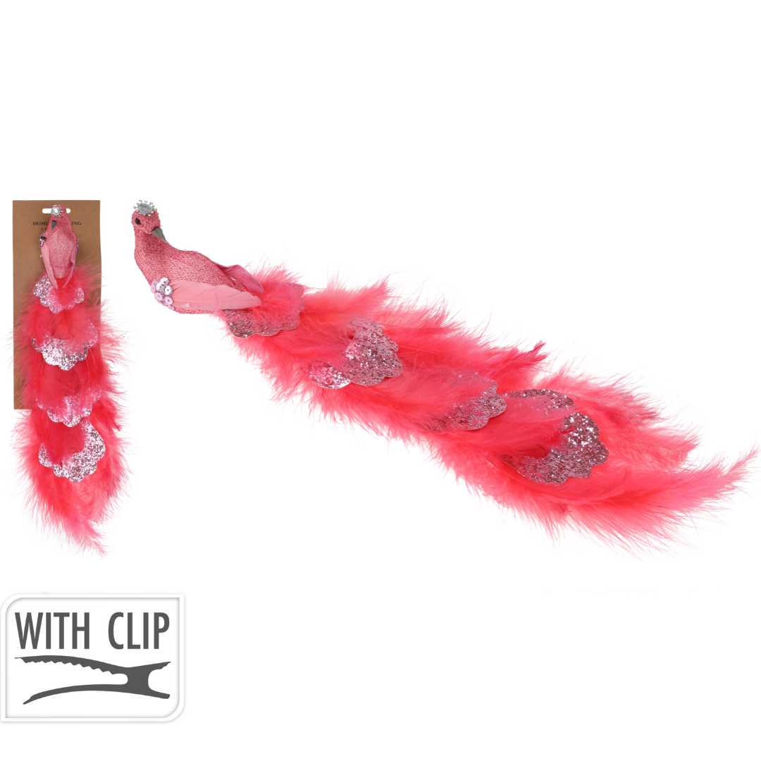 קישוט לעץ אשוח טווס פוקסיה מנצנץ 24 ס”מ