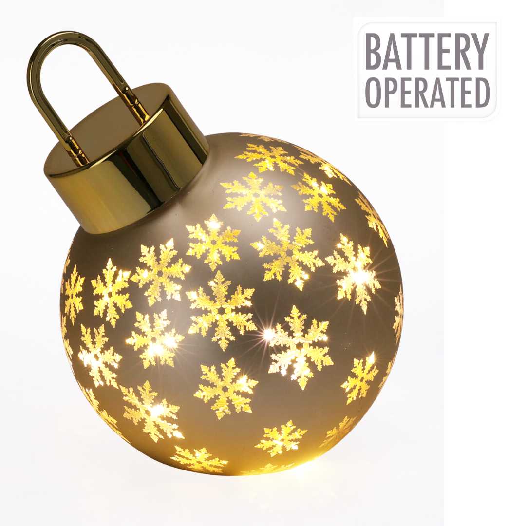 מנורת לילה דקורטיבת בצורת כדור זכוכית עם איור פתיתי שלג