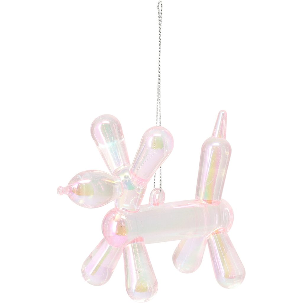 פסלון כלב לקישוט עץ חג המולד עשוי בלון, ורוד קשת בענן, 10 ס”מ.