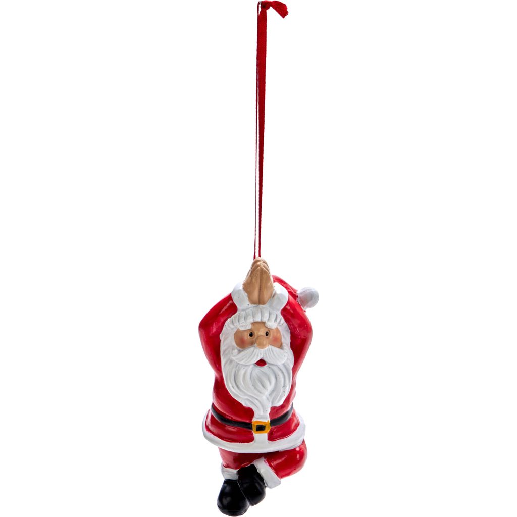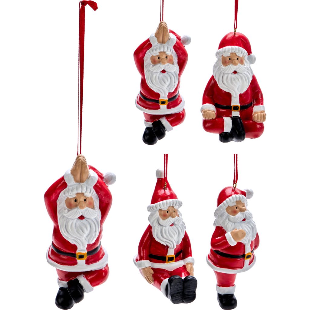 פסלון סנטה מקסים זה בתנוחת יוגה יהווה תוספת נפלאה לאוסף קישוטי עץ חג המולד שלך. עשוי מפולירזין, הוא כולל צבעים קלאסיים של אדום ולבן, לוכד מצב רוח חגיגי.