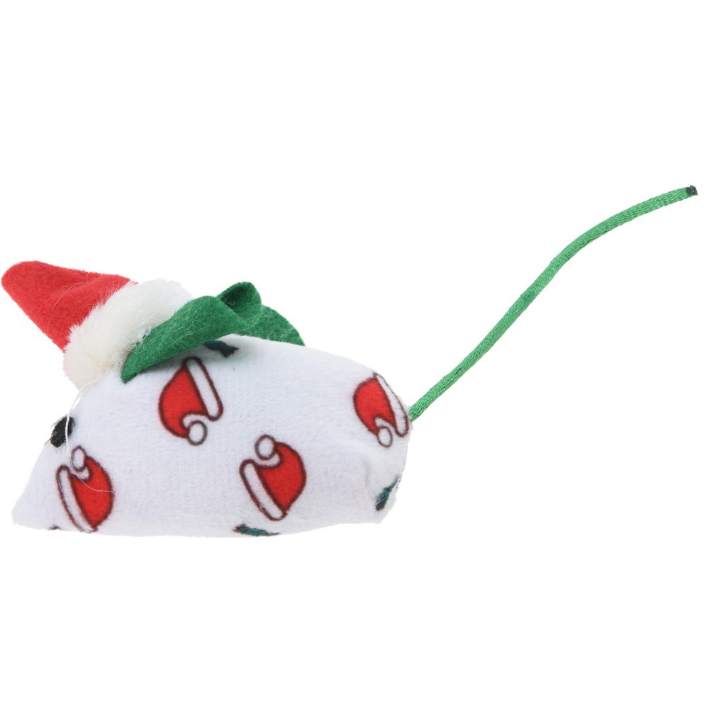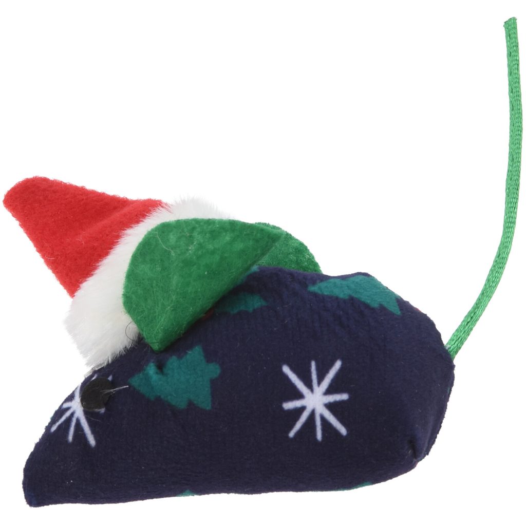 צעצוע עכבר פוליאסטר לחתולים עם הדפס חג המולד, 7 ס”מ