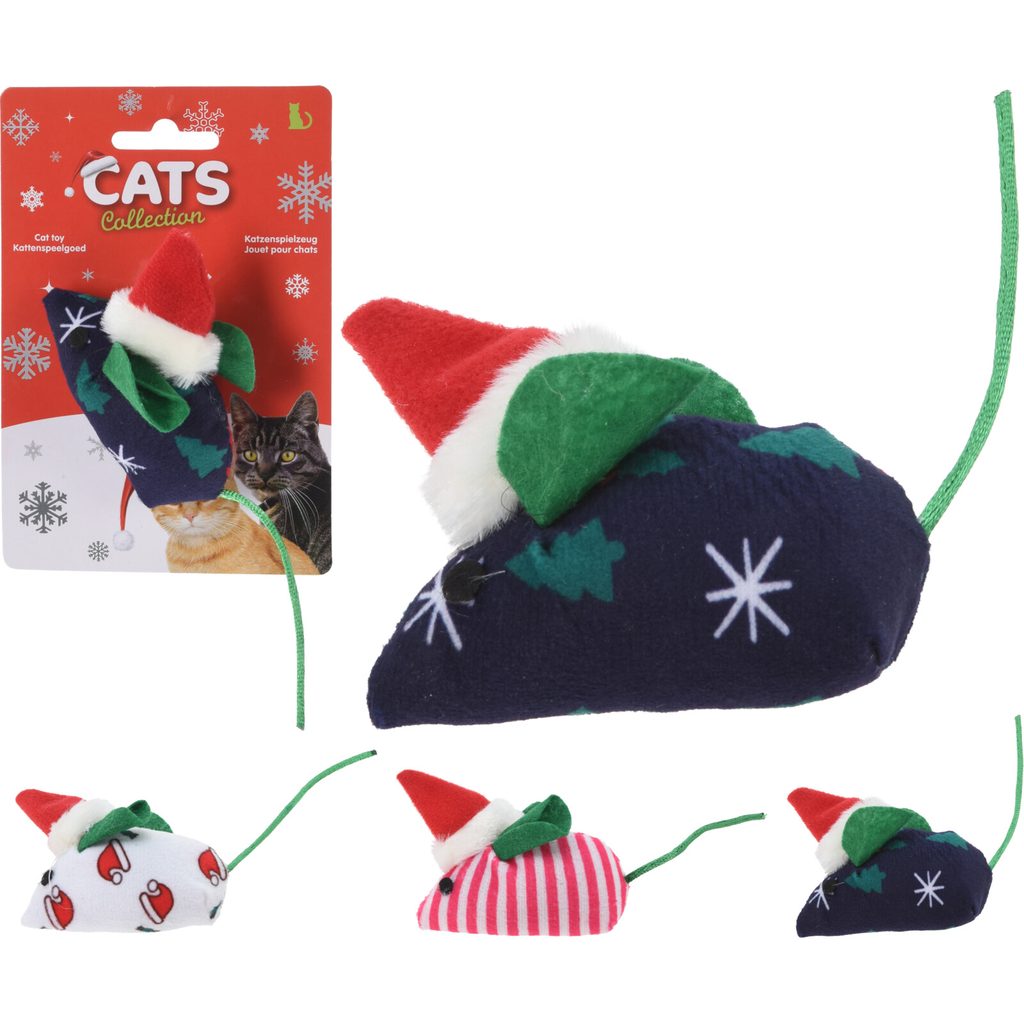 צעצוע עכבר מהנה בנושא חג המולד מהווה מתנה נהדרת עבור חיית המחמד שלך. עשוי פוליאסטר רך, מעוטר בהדפס של כובעי חג המולד למגע חגיגי. זה מגיע עם מיתר למשחק קל.