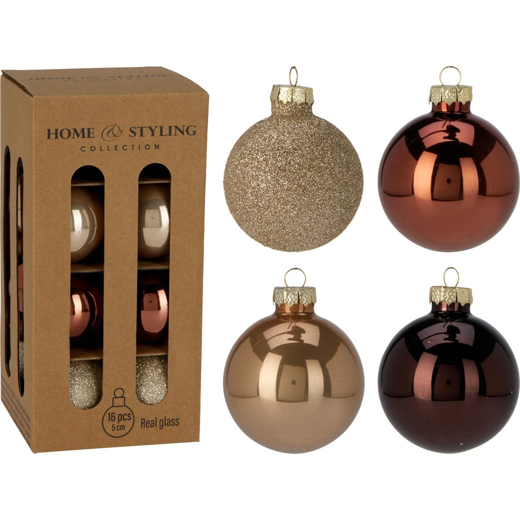 סט כדורי זכוכית לחג המולד, 16 יחידות, חום, 5 ס”מ