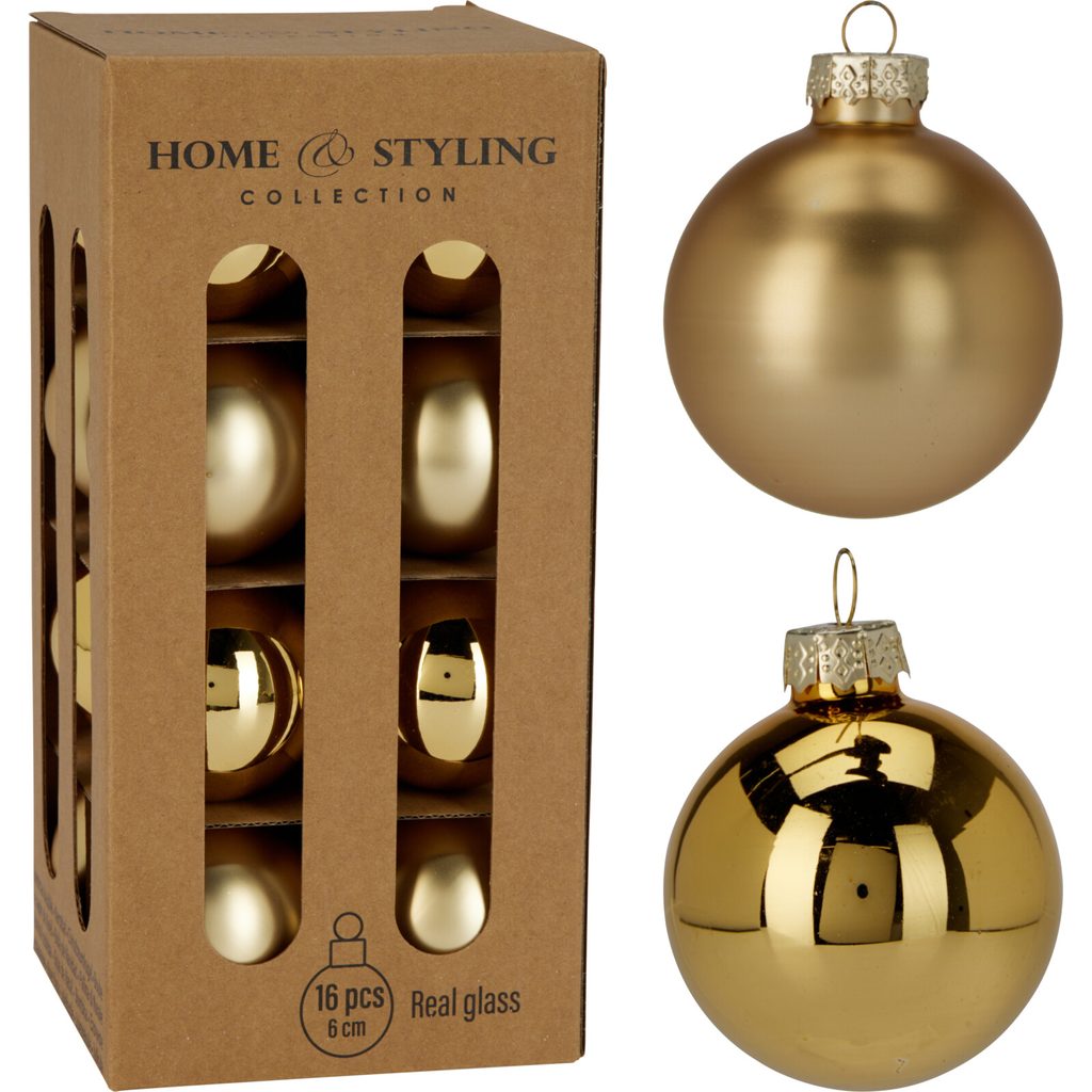 סט כדורי זכוכית לחג המולד, 16 יחידות, זהב, 6 ס”מ