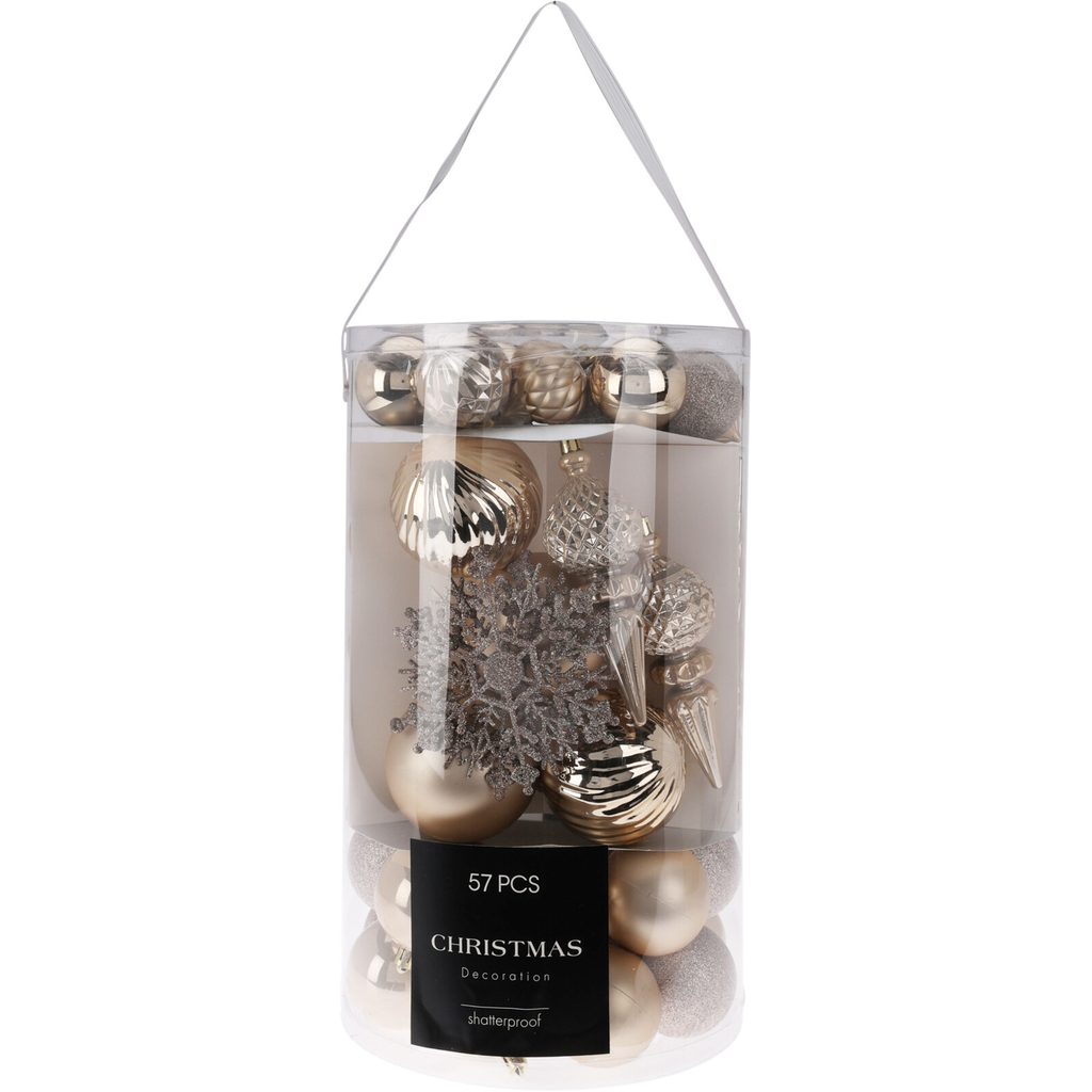 סט קישוטי עץ חג המולד, 57 יחידות, שמנת, מגוון