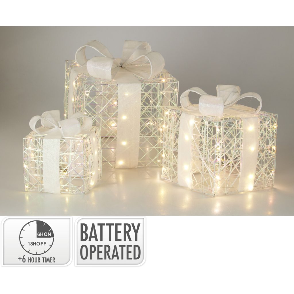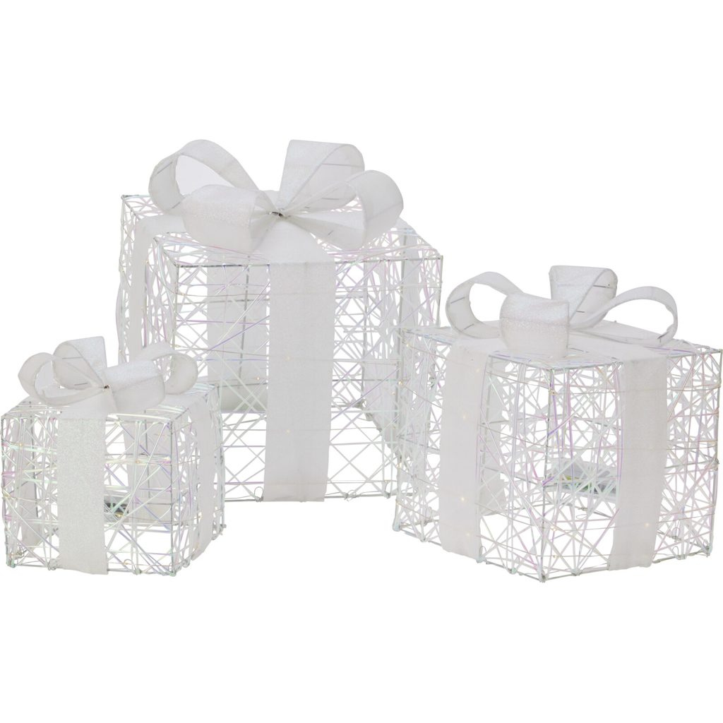 סט של 3 קופסאות מתנה LED, לבן, 17-30 ס”מ