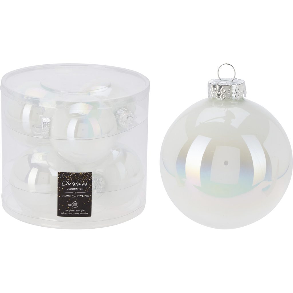 סט של 6 כדורי זכוכית, קשת אם הפנינה, 8 ס”מ