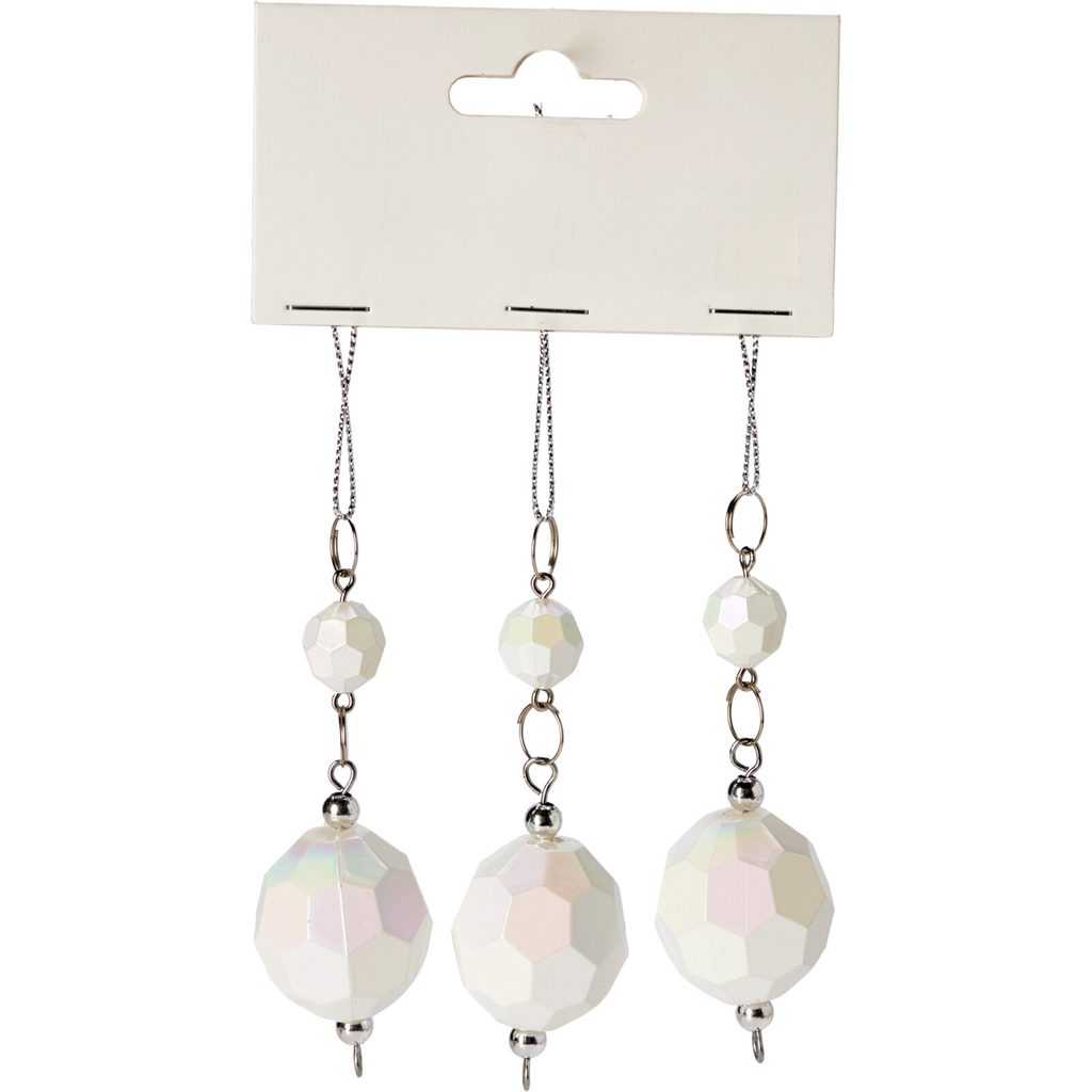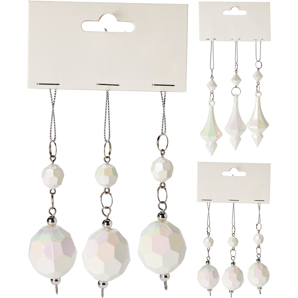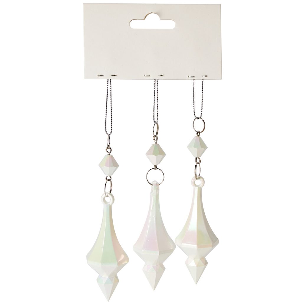 סט זה של שלושה קישוטי עץ חג המולד יוסיף קסם לעץ השנה החדשה שלך. הקישוטים עשויים בצורת דמויות רב-גוניות, שבזכותן ציפוי הקשת ינצנץ יפה ויוצר אווירה חגיגית.