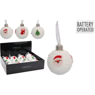 Ёлочный шар тканевый, с вышивкой Санта, с LED-подсветкой, 9 см