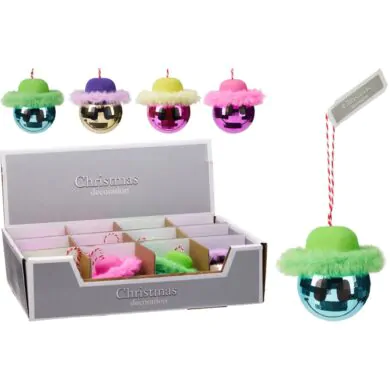 Ёлочный шар пластиковый, розовый с меховой отделкой и шляпкой, 8 см
