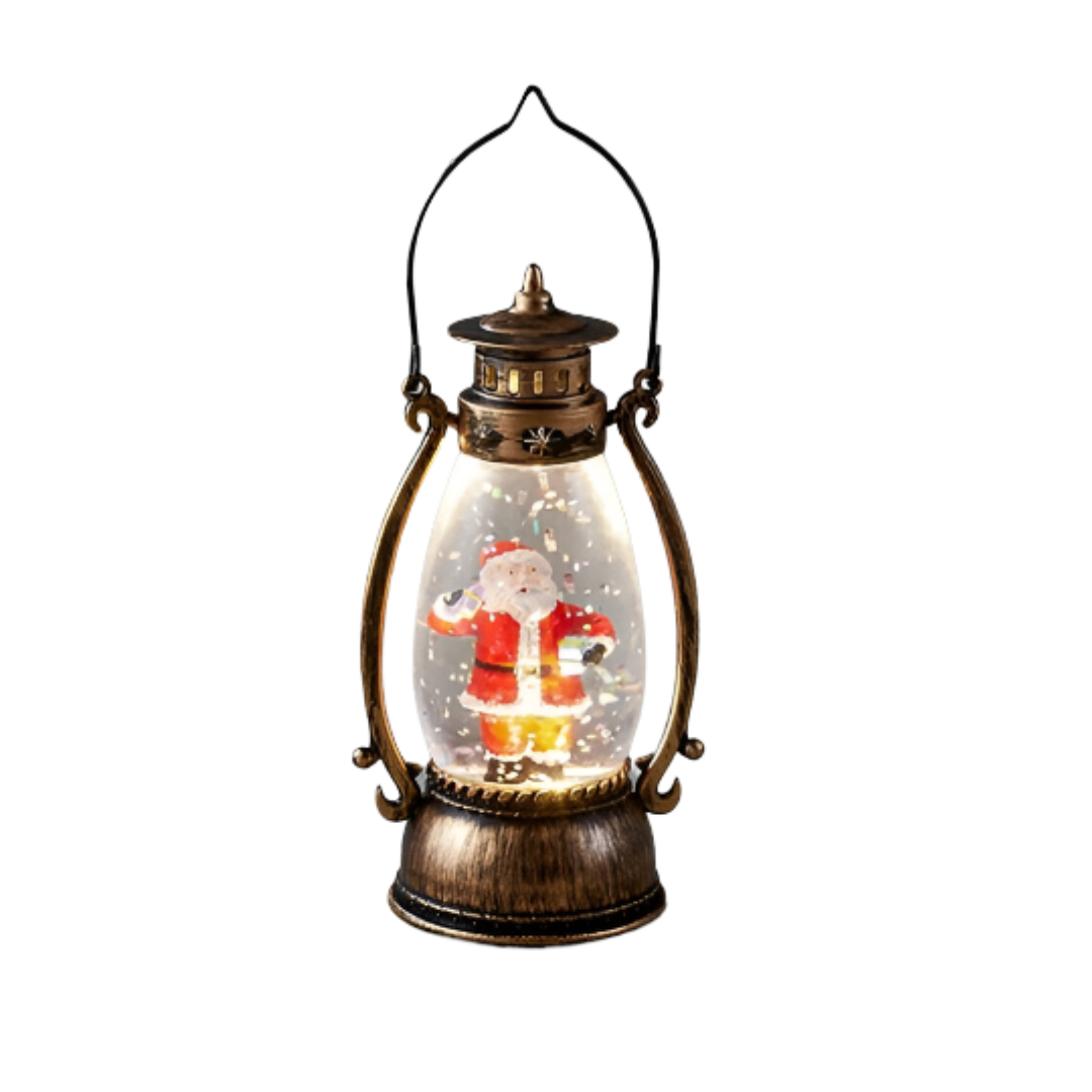 Новогодний декоративный фонарь с водой и блёстками внутри и фигуркой Деда Мороза