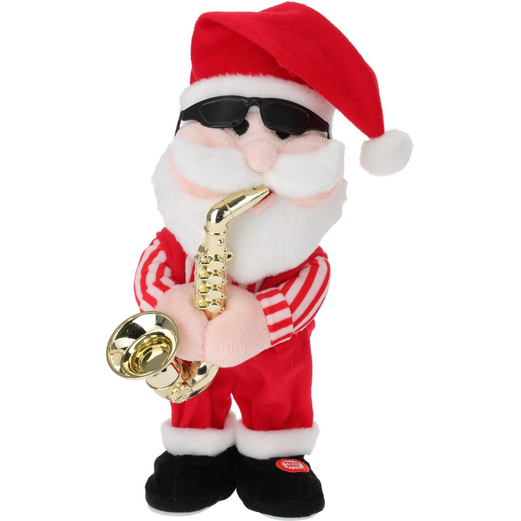 Фигурка Санта-Клауса плюшевая, поющая и танцующая с саксофоном, 35 см