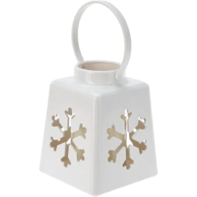 Этот очаровательный фонарь станет прекрасным дополнением к вашему новогоднему декору. Изготовлен из пластиком и украшен вырезанным узором. Внутри фонаря находится LED-свеча с таймером (6 часов вкл. / 18 часов выкл.), абсолютно безопасная для детей и животных.