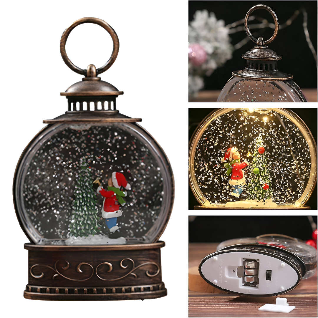 Декоративный новогодний фонарь с подсветкой наполненный водой и блёстками с фигуркой Ребёнка и Ёлки внутри