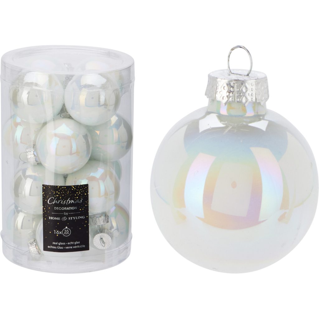 Набор из 16 стеклянных шаров, перламутровые радужные, 3.5 см
