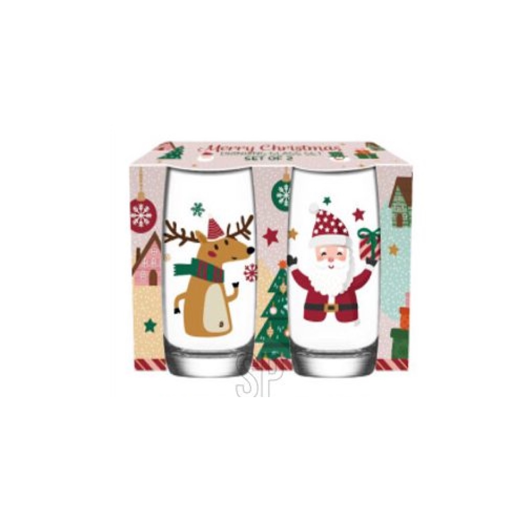 Набор из 2 стаканов для напитков, стеклянные, с новогодним принтом, 250 мл