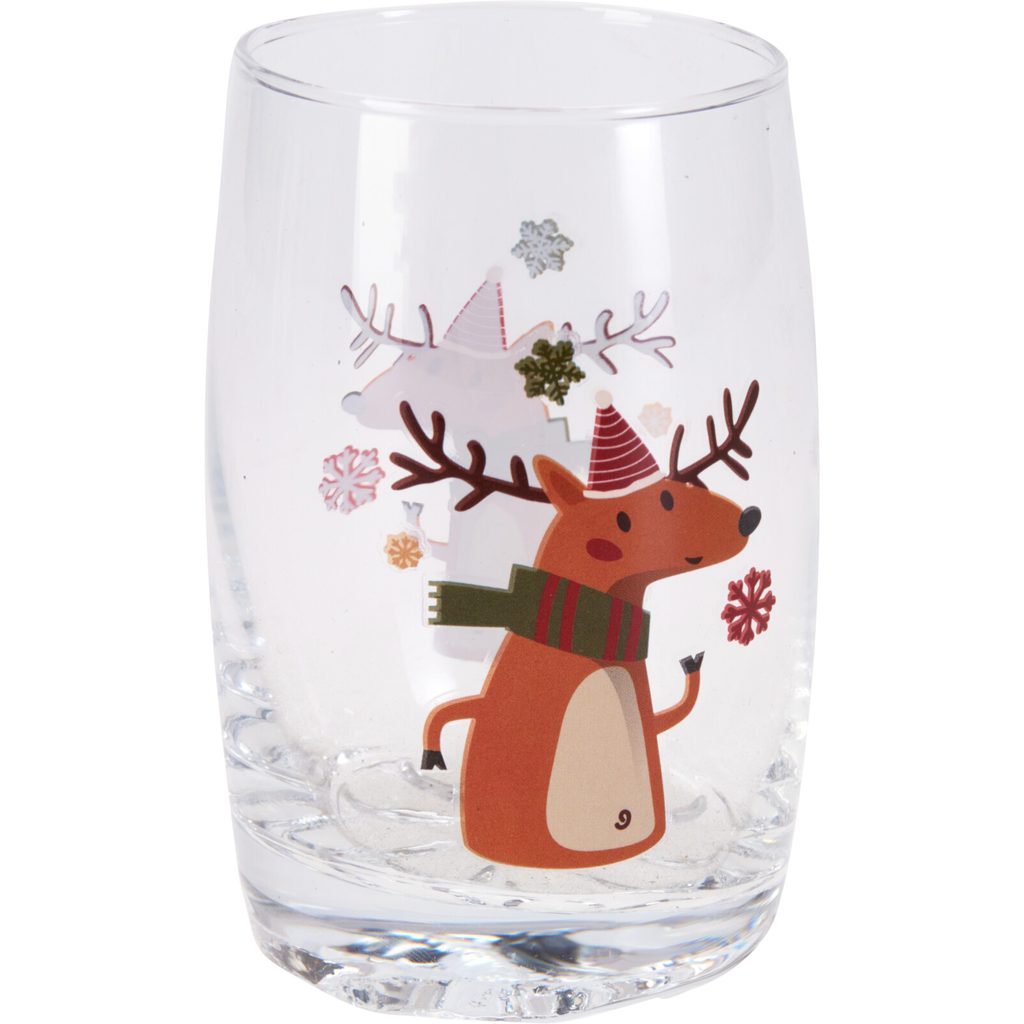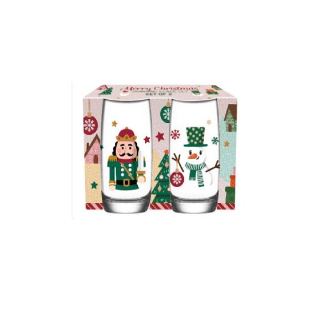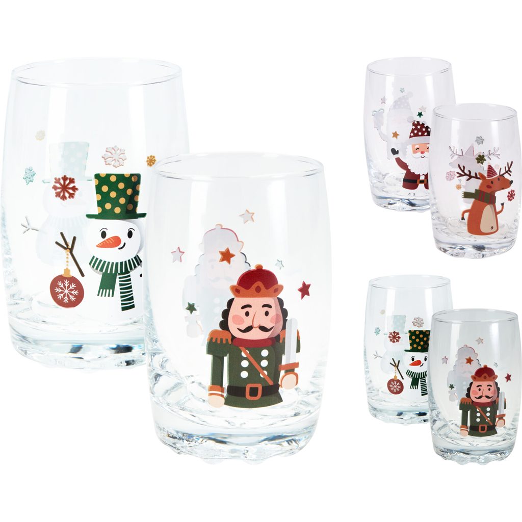 Этот набор из двух стаканов для напитков станет прекрасным дополнением к вашему праздничному столу. Стаканы украшены яркими новогодними иллюстрациями с оленем, Сантой, Щелкунчиком и снеговиком, создавая атмосферу волшебства.