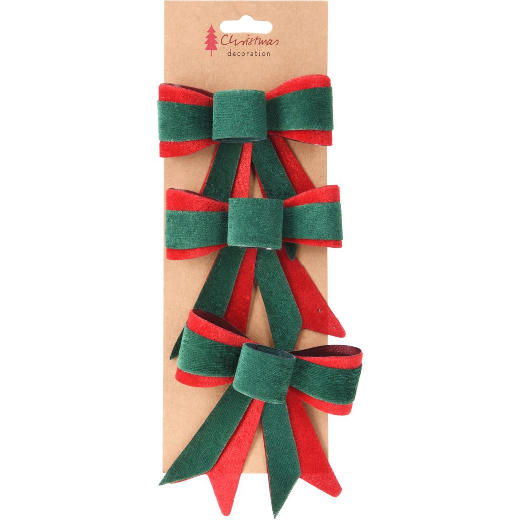 Этот набор из трёх ёлочных украшений в виде бантов станет прекрасным дополнением к вашему новогоднему декору. Банты выполнены в классических рождественских цветах — зелёном и красном, что придаёт им праздничный вид. Они отлично подойдут для украшения ёлки, подарков или создания праздничной композиции.
