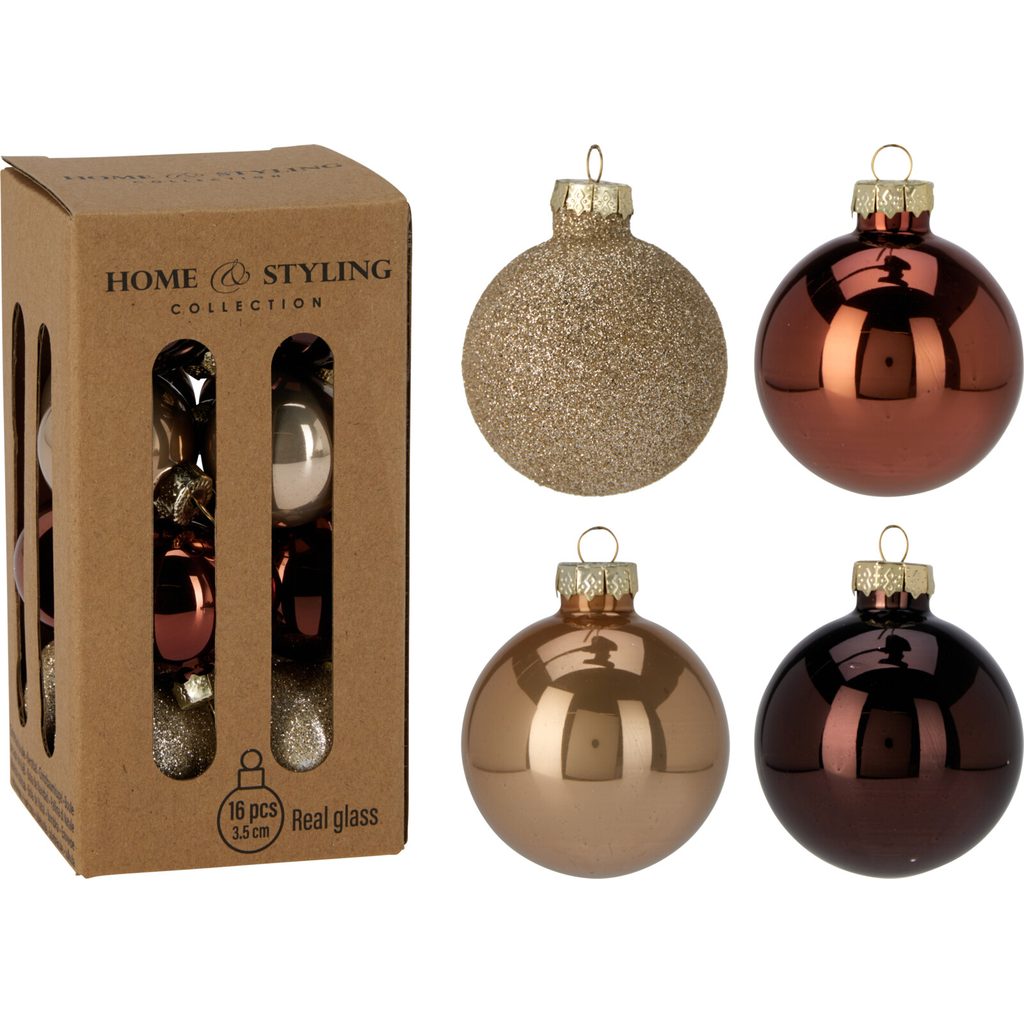 Набор ёлочных стеклянных шаров, 16 шт., коричневый, 3.5 см