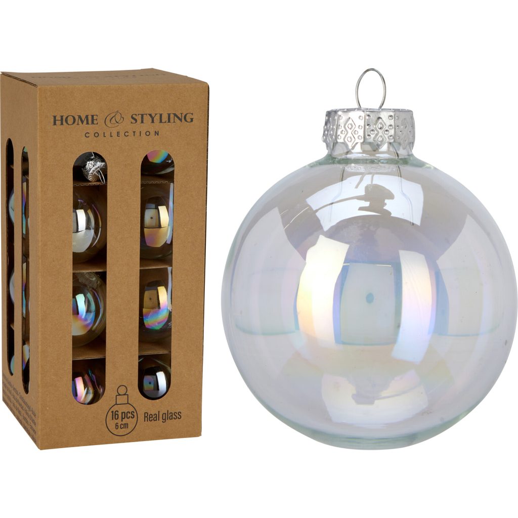 Набор ёлочных стеклянных шаров, 16 шт., перламутровые радужные, 6 см