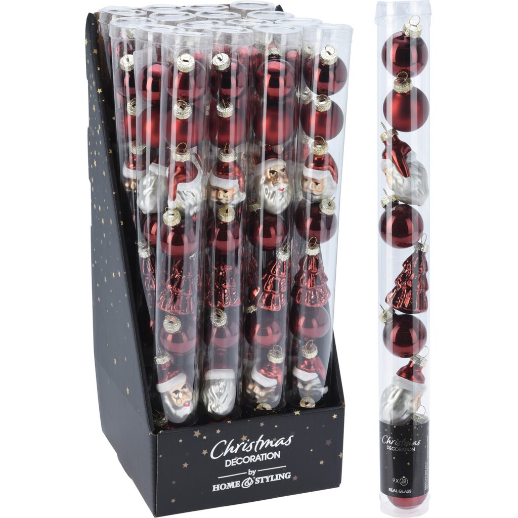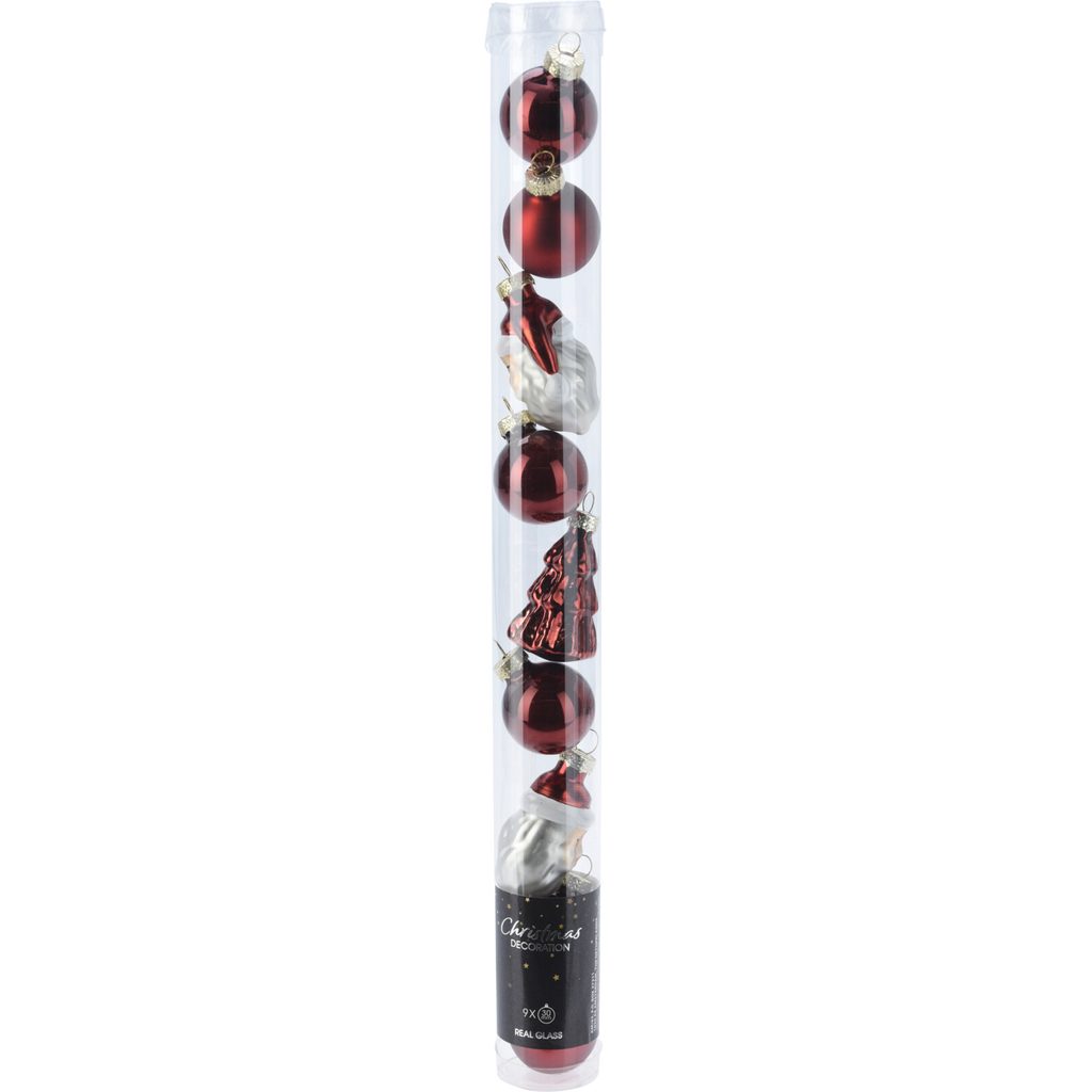 Этот набор ёлочных украшений состоит из стеклянных шаров и фигурок в насыщенном бордовом цвете, которые добавят элегантности вашей новогодней елке. Украшения выполнены из стекла, что придает им изысканный блеск и ощущение праздника.
