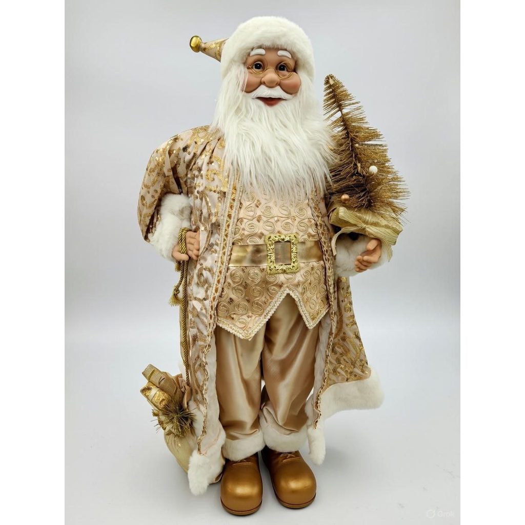 Этот обаятельный Санта-Клаус в золотой шубе с меховой отделкой станет заметным украшением новогоднего интерьера. Фигурка предназначена для декора и не поёт.