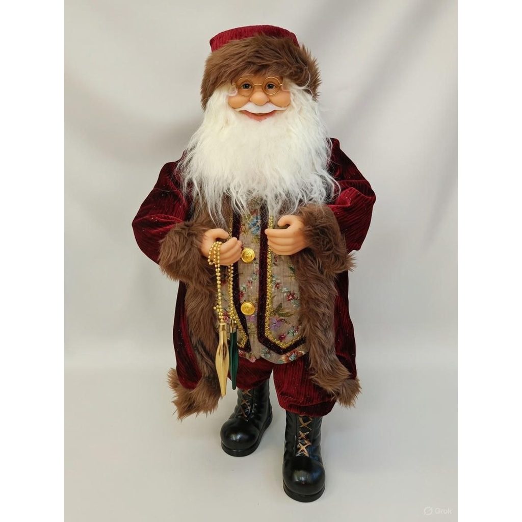 Этот обаятельный Санта-Клаус в тёплой шубе с меховой отделкой станет заметным украшением новогоднего интерьера. Фигурка предназначена для декора и не поёт. Для высоты 90 см выберите L, для 60 см выберите S.