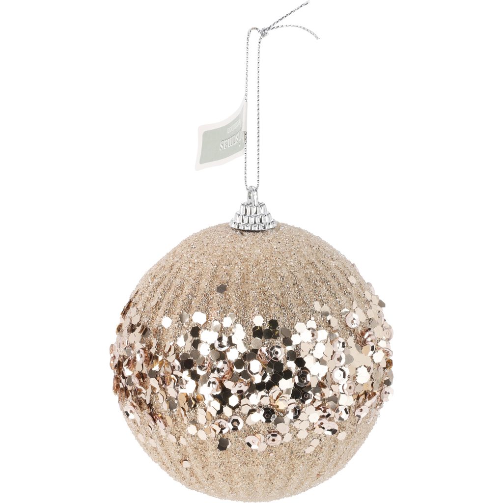 Шар ёлочный, пластик, шампань с пайетками, 10 см