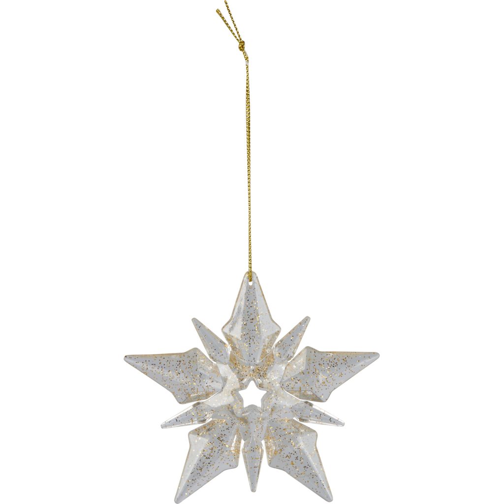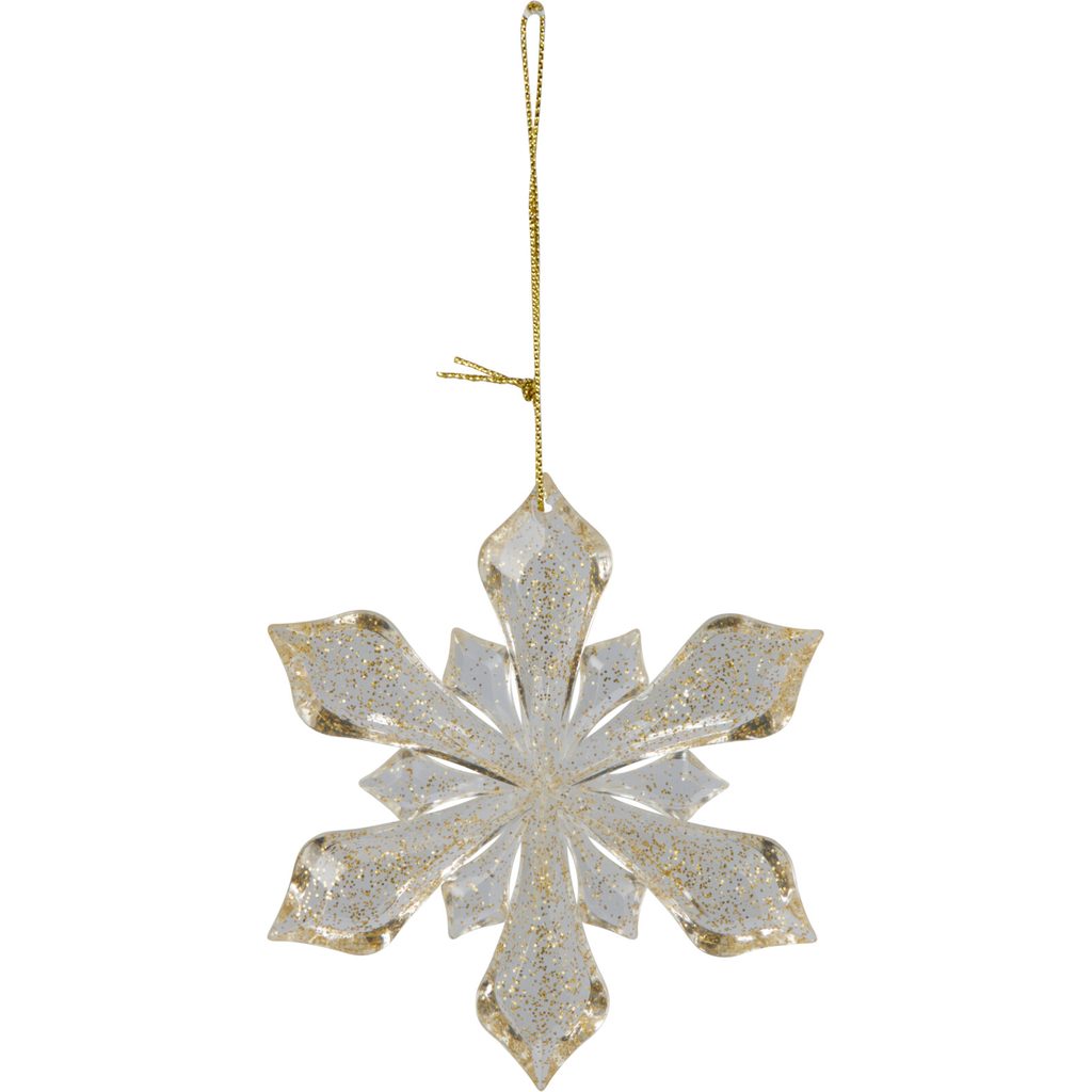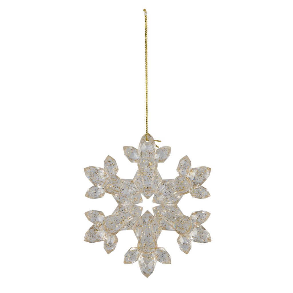 Очаровательное ёлочное украшение в форме снежинки с золотыми блестками. Этот аксессуар добавит волшебства и праздничного настроения вашей ёлке или интерьеру.