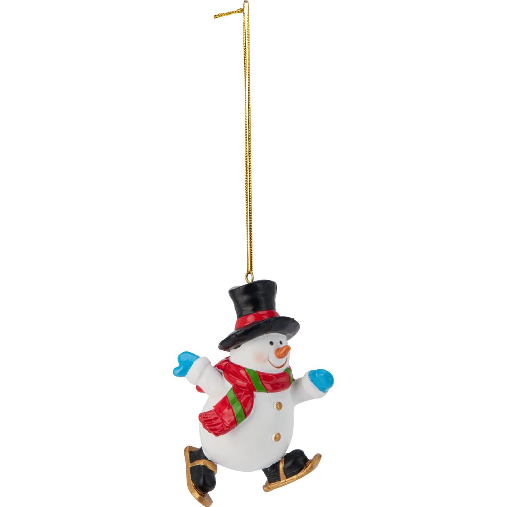 Ёлочная фигурка Снеговик на лыжах, полистоун, 8 см