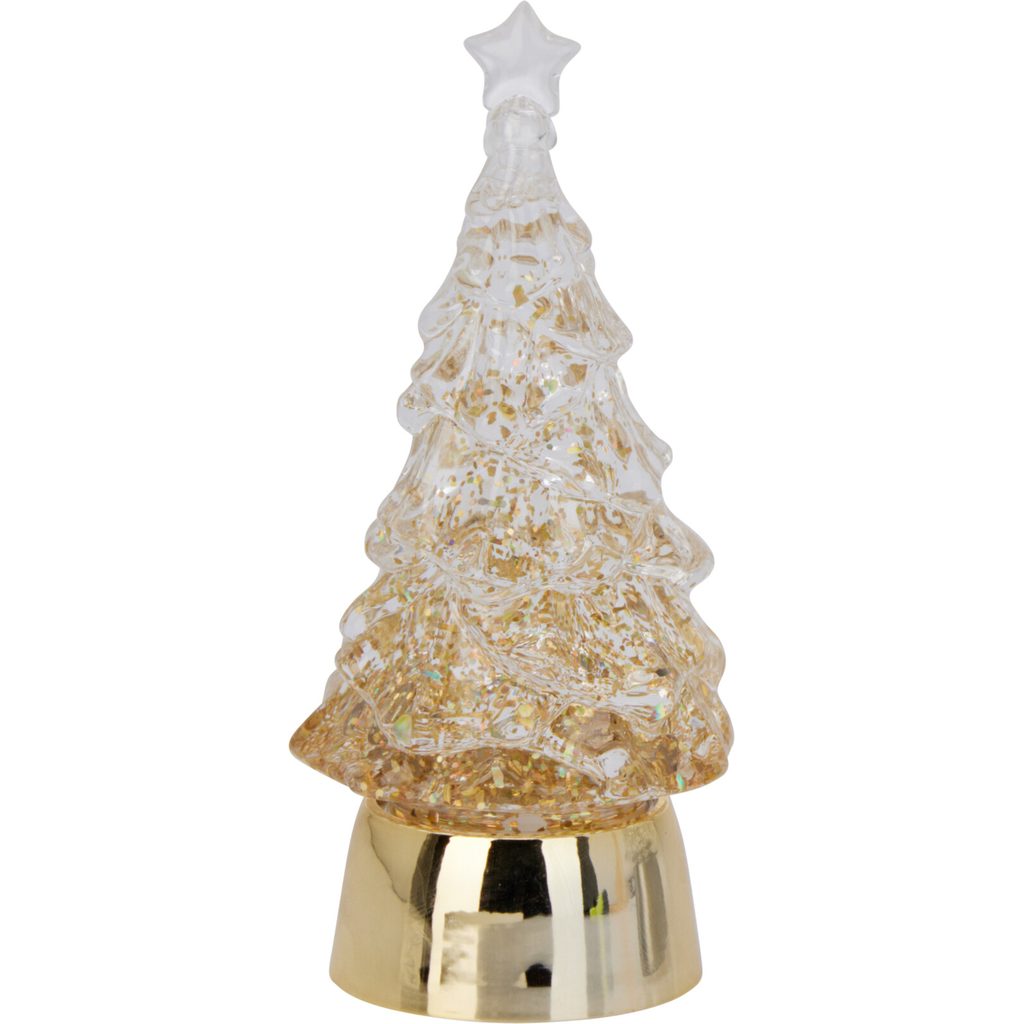 Ёлочная игрушка ёлка пластиковая с LED-подсветкой, золотистая с блёстками, 13 см