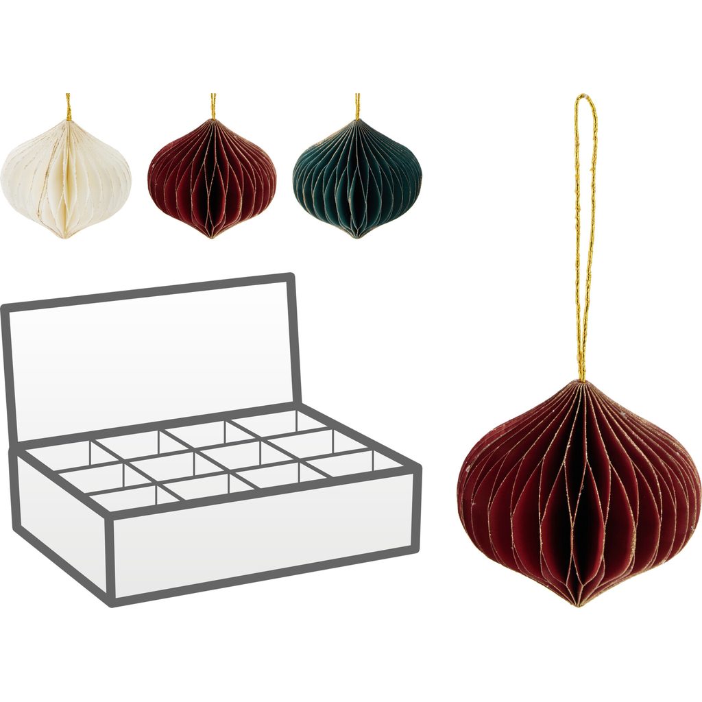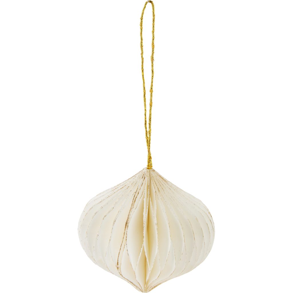 Это элегантное ёлочное украшение в форме луковицы выполнено из бумаги и украшено золотистыми блёстками по краям складок. Оно добавит изысканности и праздничного настроения вашей новогодней ёлке. Экологически чистый материал.