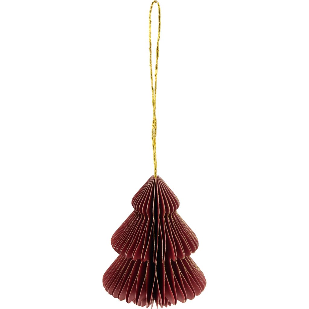 Это изящное украшение в форме елочки выполнено из качественной бумаги с мерцающими золотистыми вкраплениями по краям. Экологически чистый материал.