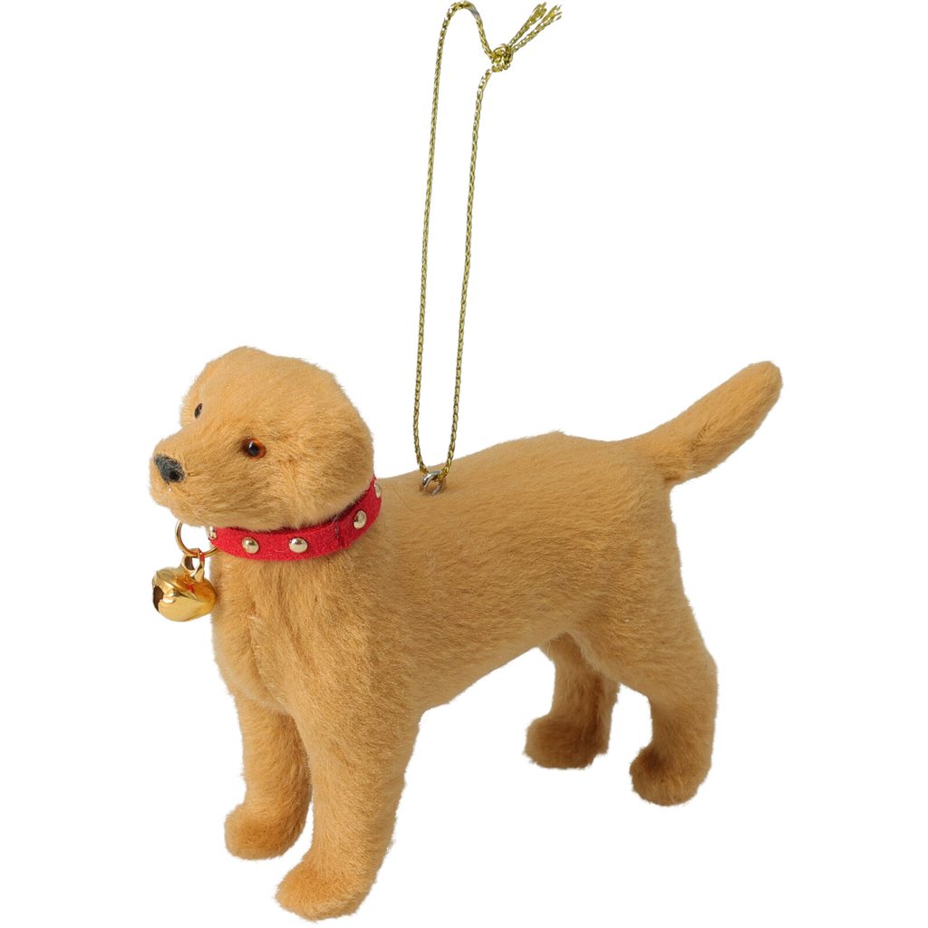 Ёлочное украшение Собака плюшевая, коричневая с красным ошейником и колокольчиком, 14 см