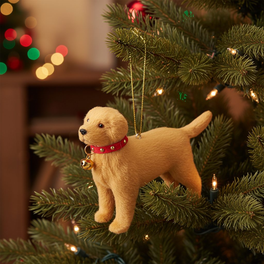 Это очаровательное ёлочное украшение в виде плюшевой собачки станет милым дополнением к вашему новогоднему декору. Фигурка выполнена в виде коричневой собачки с ярким красным ошейником, украшенным серебристыми заклепками, и золотистым колокольчиком.